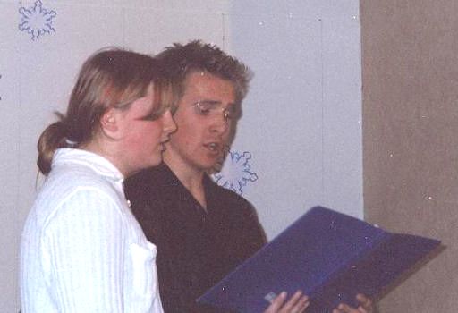 spodaj vnuka Mira in Sinan nadaljujeta tradicijo; maj 2002, na koncertu Viktorju Mihelčiču.